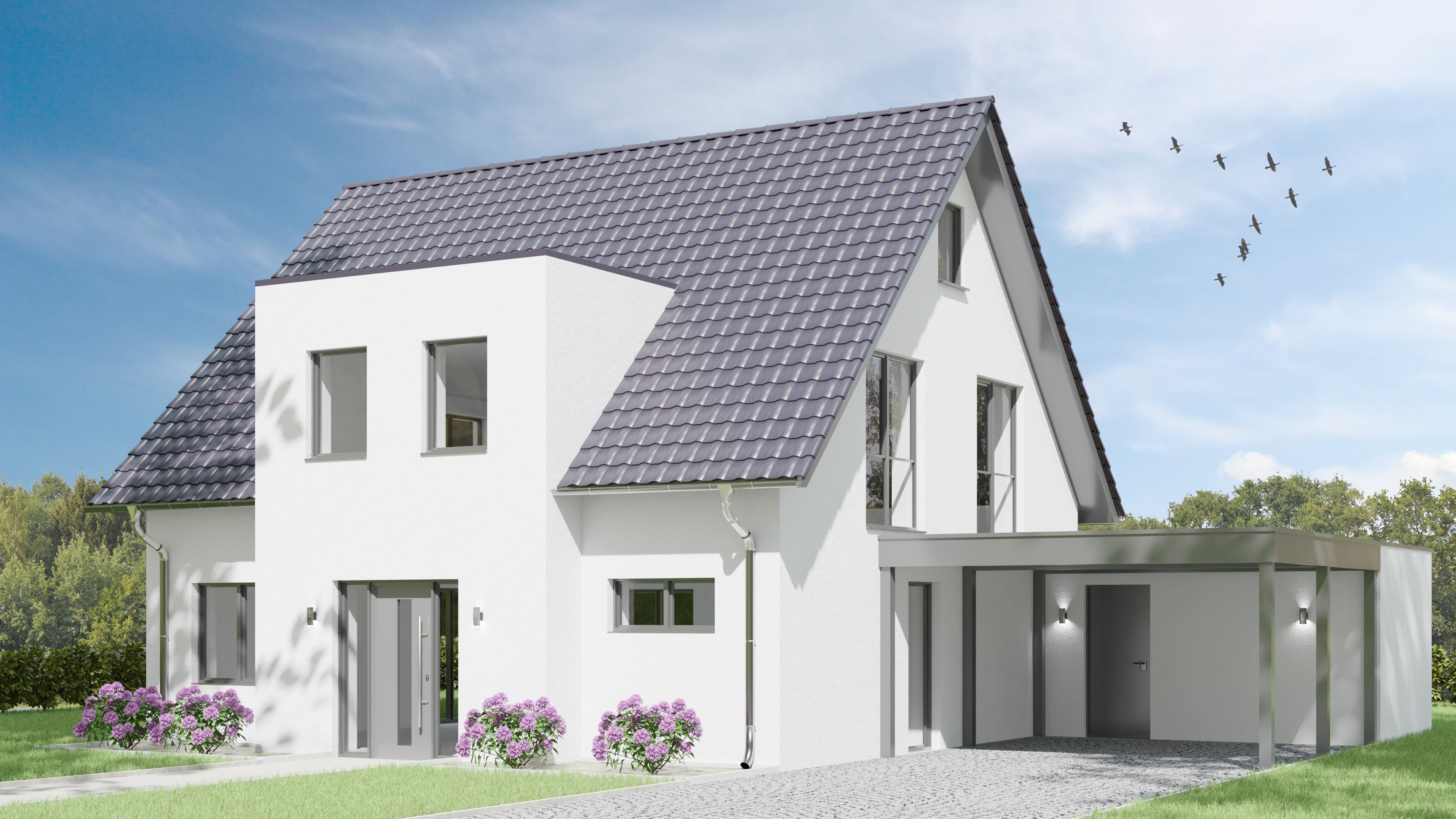 Die Kombination aus klassischem Einfamilienhaus und geradliniger Architektur ist genau dein Ding? Du suchst ein Familienhaus mit genug Raum für ein zusätzliches Gäste- oder Arbeitszimmer? Du brauchst ein Wohlfühlbad mit großzügiger Dusche und gemütlicher Badewanne?