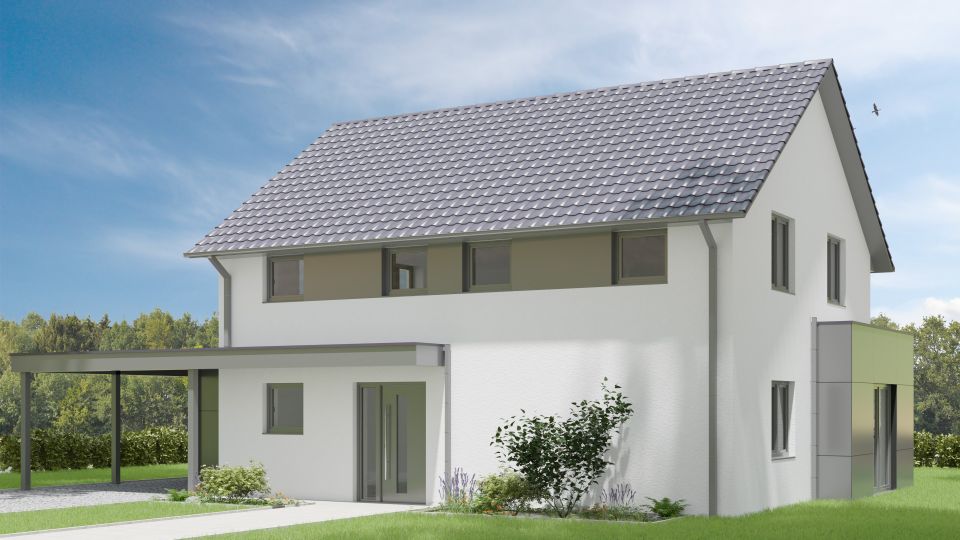 Du hast deine bessere Hälfte gefunden: Das Meinfamilienhaus 6 mit zwei Vollgeschossen, flachem Satteldach und Wohnzimmer-Erker hat das gewisse Etwas, das ein Haus braucht, um dein Traumhaus zu werden!
